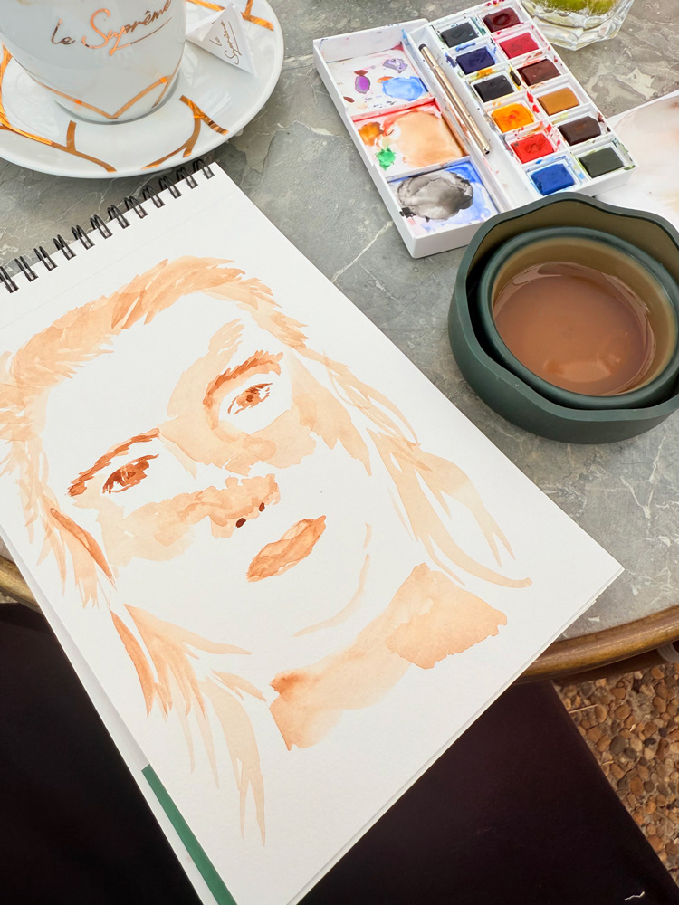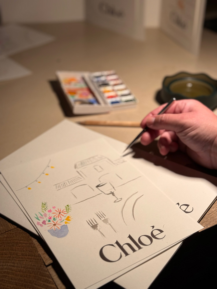Dessin, aquarelle et peinture en direct, avec la personnalisation de goodies tels que tote bags,